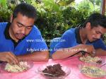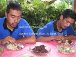 Sampai2 tengok budak2 Penang pun baru sampai. Tengah menjamu selera. Tetamu lain dah balik. Ye la..dah kul 5 petang. Hujan lak tu. Turun motor, salam2 dengan geng Penang....terus carik nasi. Lapar beb. Lauk lak sedap2. Erm..bukan lapar dah ni, ni dah gelojoh. Tengok je la Edy ngan Lan melantak. Lagi2 Lan..memang kebulor ler.